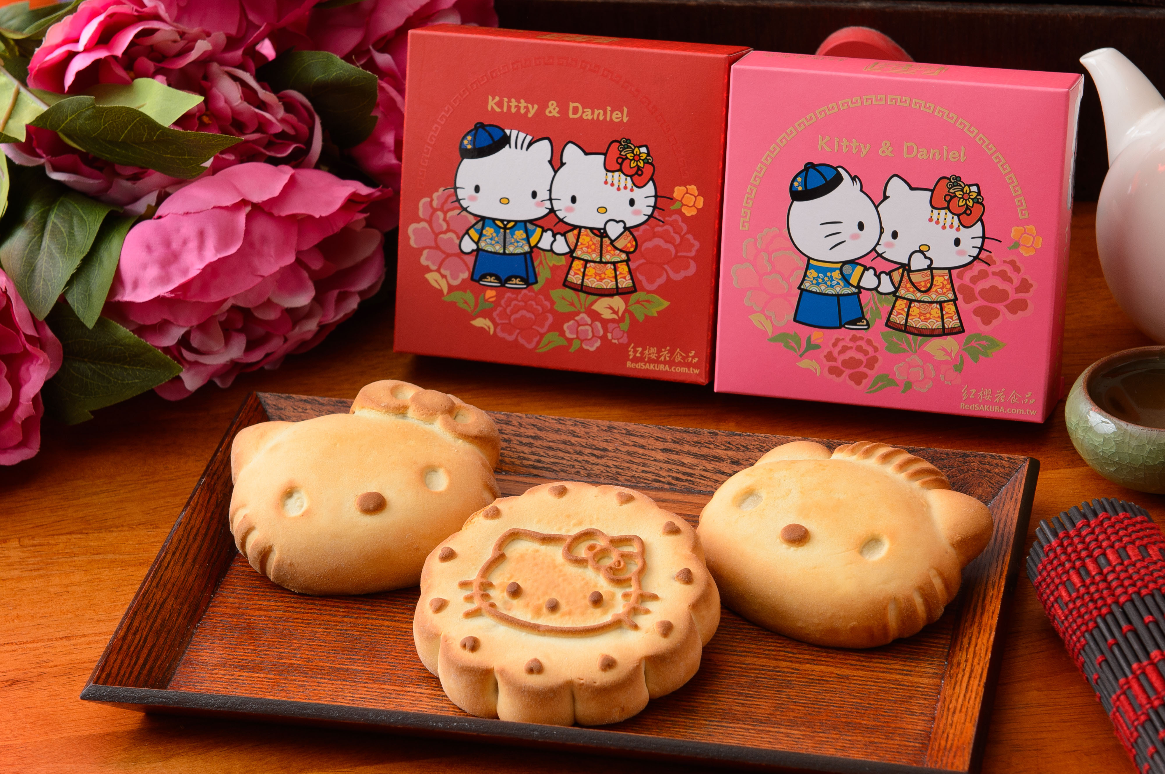 從禮盒視覺到囍餅製作,在每個環節上都費盡心思,紅櫻花Hello Kitty囍餅自推出以來一直深受長輩與新人的喜愛,紅色系燙金的設計,以傳統禮服的KITTY & DANIEL為主角,外觀討喜兼具大方得體,囍餅製作上為了打造獨一獨二的Kitty造型漢餅,由經驗豐富的老師傅使用造型木模手工製作而成,多款經典口味,每款皆以上等嚴選食材和多道繁複工法用心製作,致力打造出中式囍餅傳統喜餅的幸福新食感,不只保留了傳統,也符合了時下潮流。還可以依據不同的禮盒自由搭配多種經典口味,每款經典口味的喜餅皆以上等嚴選食材和多道繁複工法用心製作,口感層次豐富、香甜不膩,每一口都能感受到幸福美好滋味。