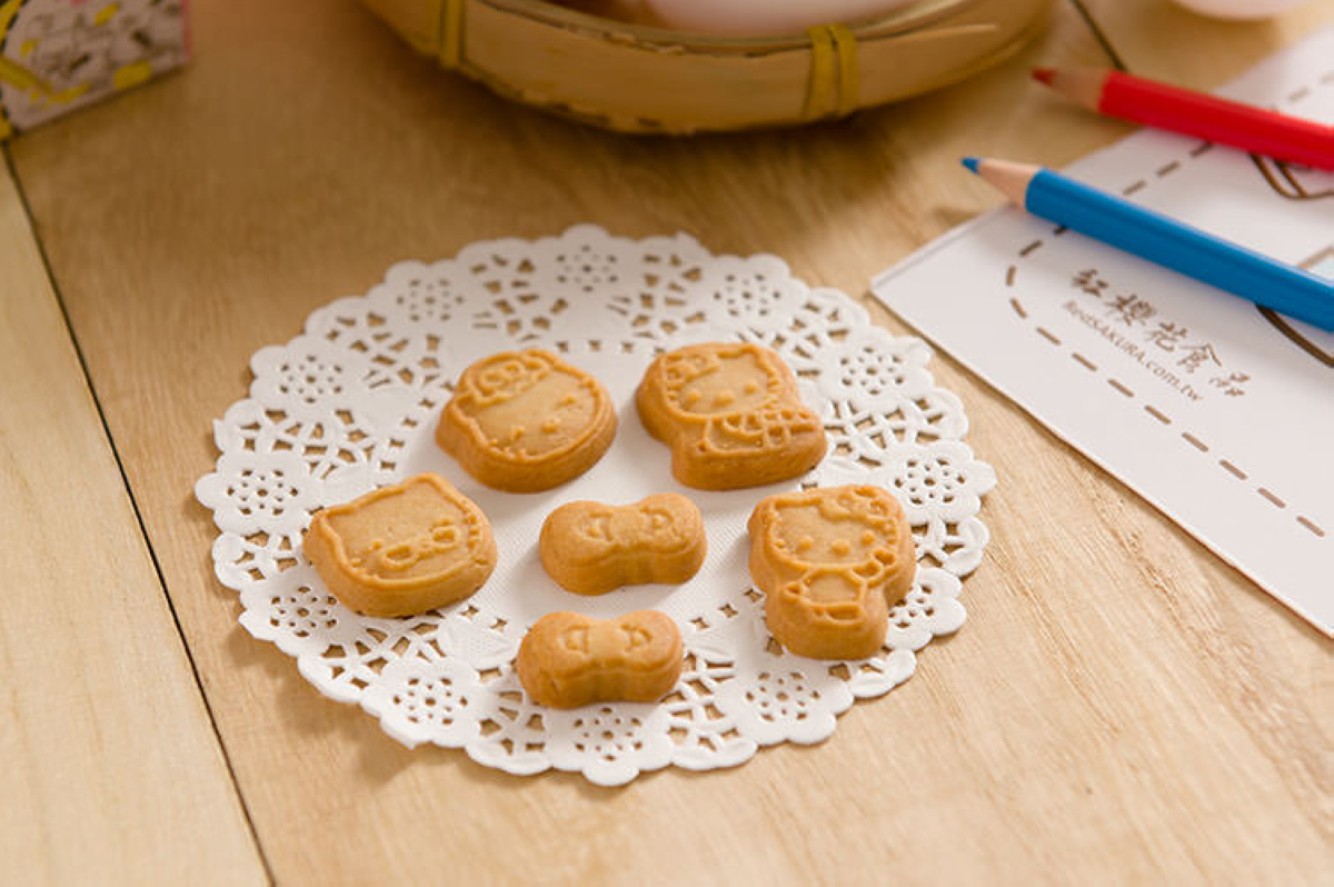 即使成本再高,紅櫻花也堅持使用好的食材製作,紅櫻花使用選自法國的諾曼地奶油、米歇爾可可粉,製作出三麗鷗授權的Hello Kitty造型餅乾,擁有5種超可愛的Hello Kitty造型的曲奇小餅乾,濃郁的餅乾香氣滿足您的味蕾,香醇淡雅的奶油口味、絲滑濃醇的苦甜系大人巧克力口味,讓人忍不住一口接一口,是辦公室團購零食、團購美食的常勝軍,也是午茶分享時光的最佳茶點選擇喔。