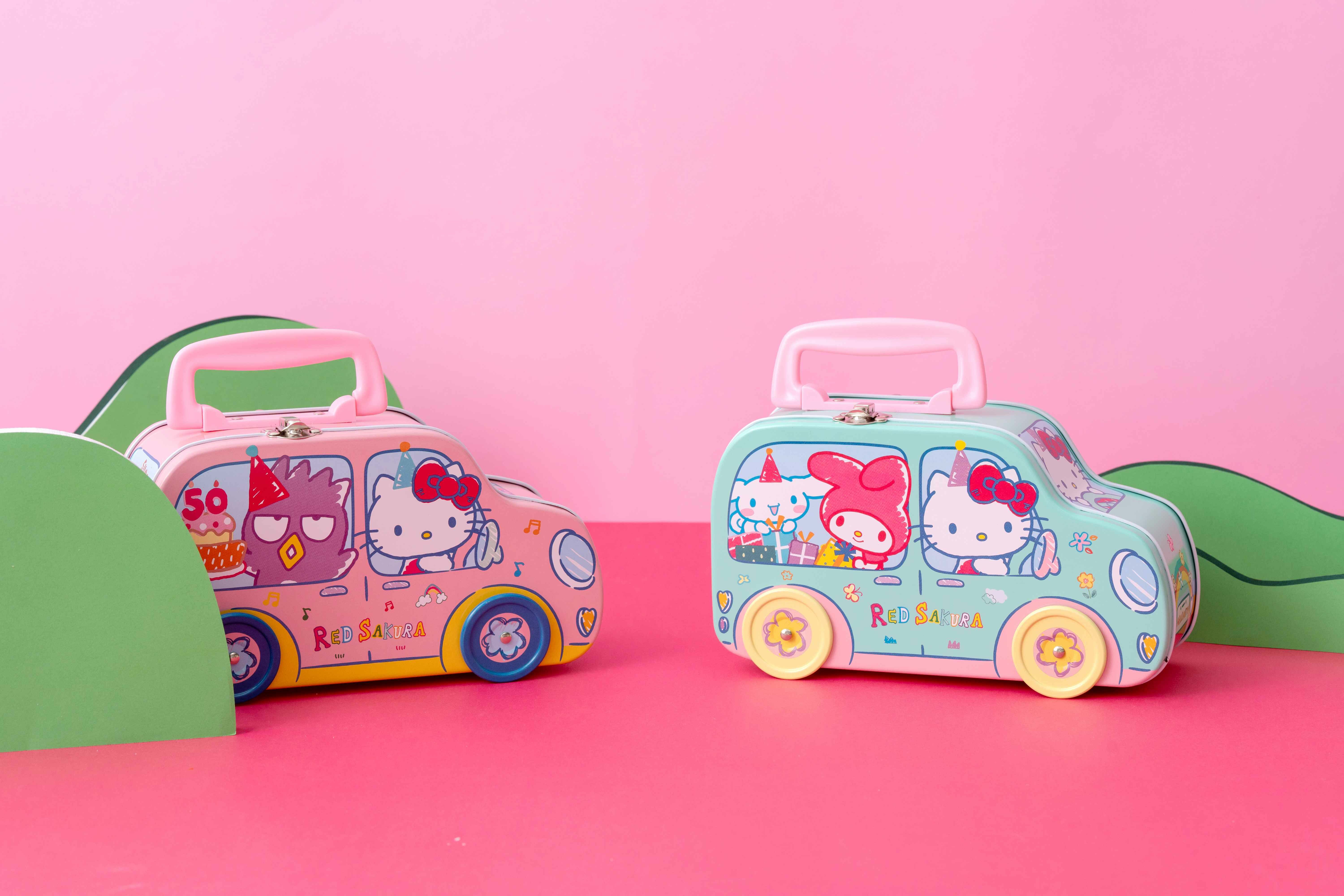 鏘鏘~~~Hello Kitty五十週年紀念版造型小車車來啦,車車的小輪子真的可以轉動喔,存錢筒的設計更是讓孩子愛上「咚咚」的存錢好習慣。多種用途的車車存錢筒,快來讓Hello Kitty成為孩子們的好朋友吧。