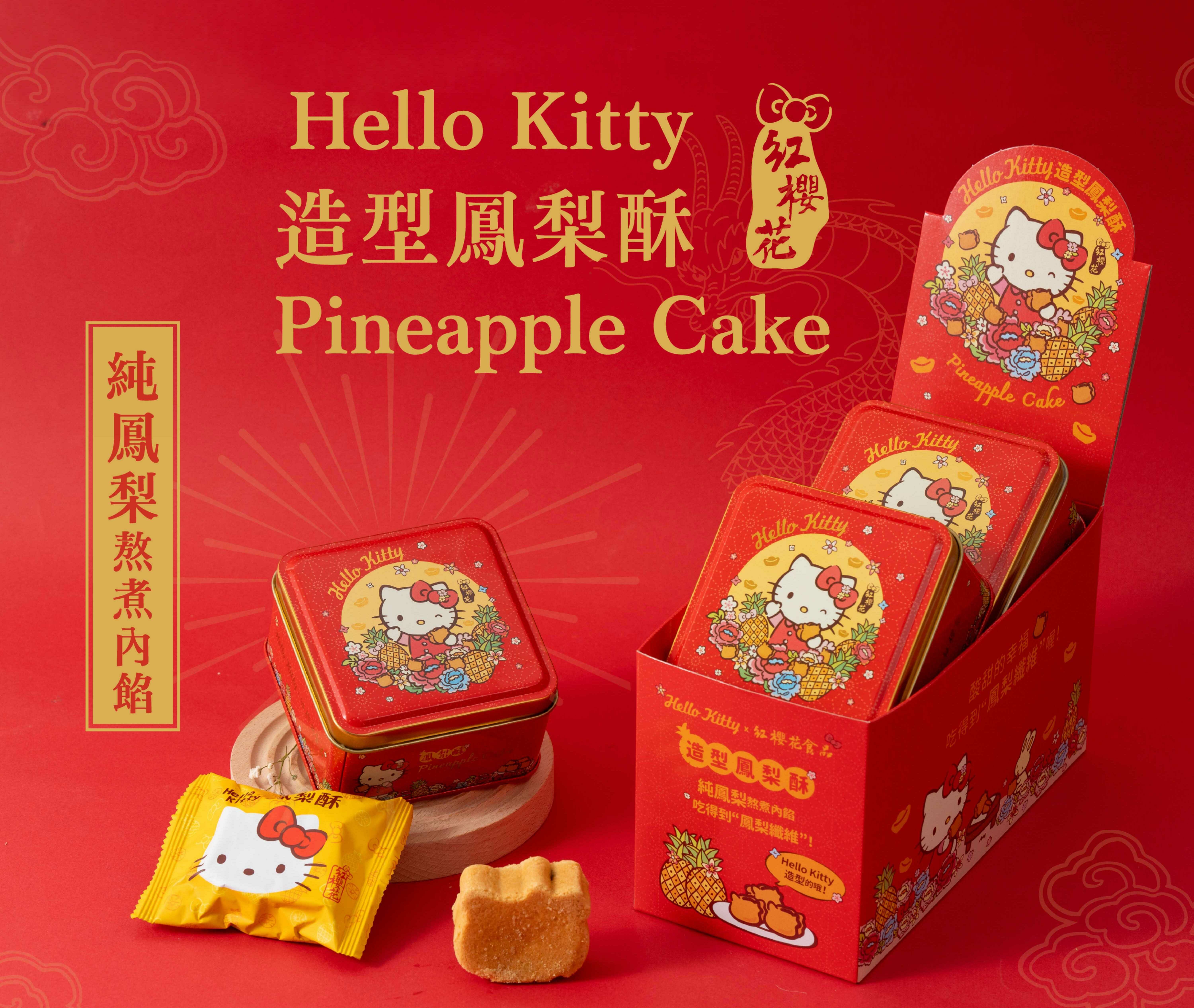 有別以往方方正正的鳳梨酥,紅櫻花獲得三麗鷗授權Hello Kitty,推出超可愛Kitty造型的鳳梨酥,特殊的濃郁果香,果實小、甜度高、酸度低,原始的酸甜果香和纖維,就算成本再高紅櫻花也要使用這麼好的食材,堅持採用純正100%鳳梨熬煮調製而成的鳳梨酥內餡,不添加防腐劑,誠意滿滿的餡料,讓你可以直接品嚐到鳳梨纖維的濃郁果香,健康低糖,加上極佳的Q軟口感,微酸微甜,配上嚴選紐西蘭奶油細心桿製而成的餅皮,外酥內軟,讓你不只吃得美味,看得更開心。