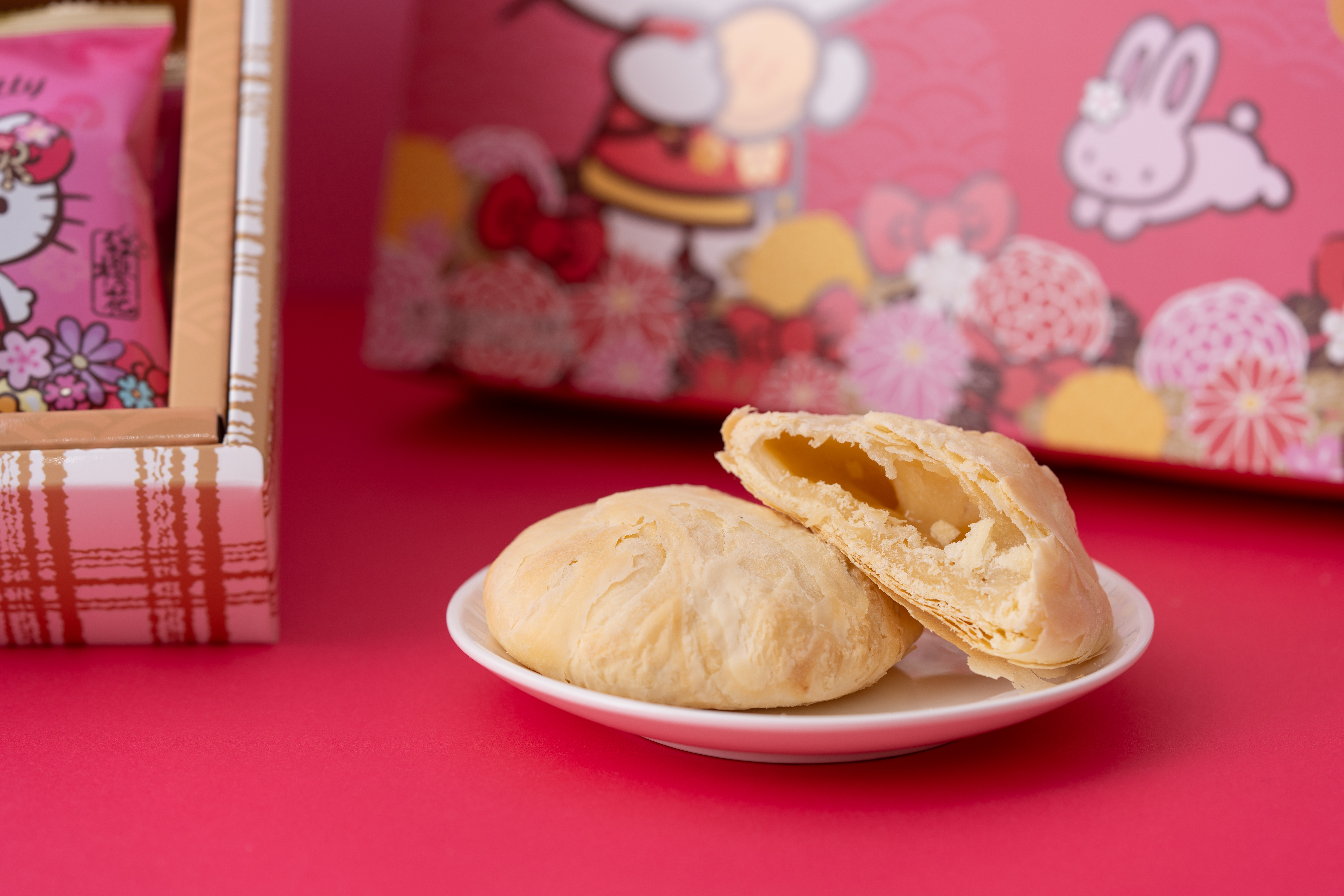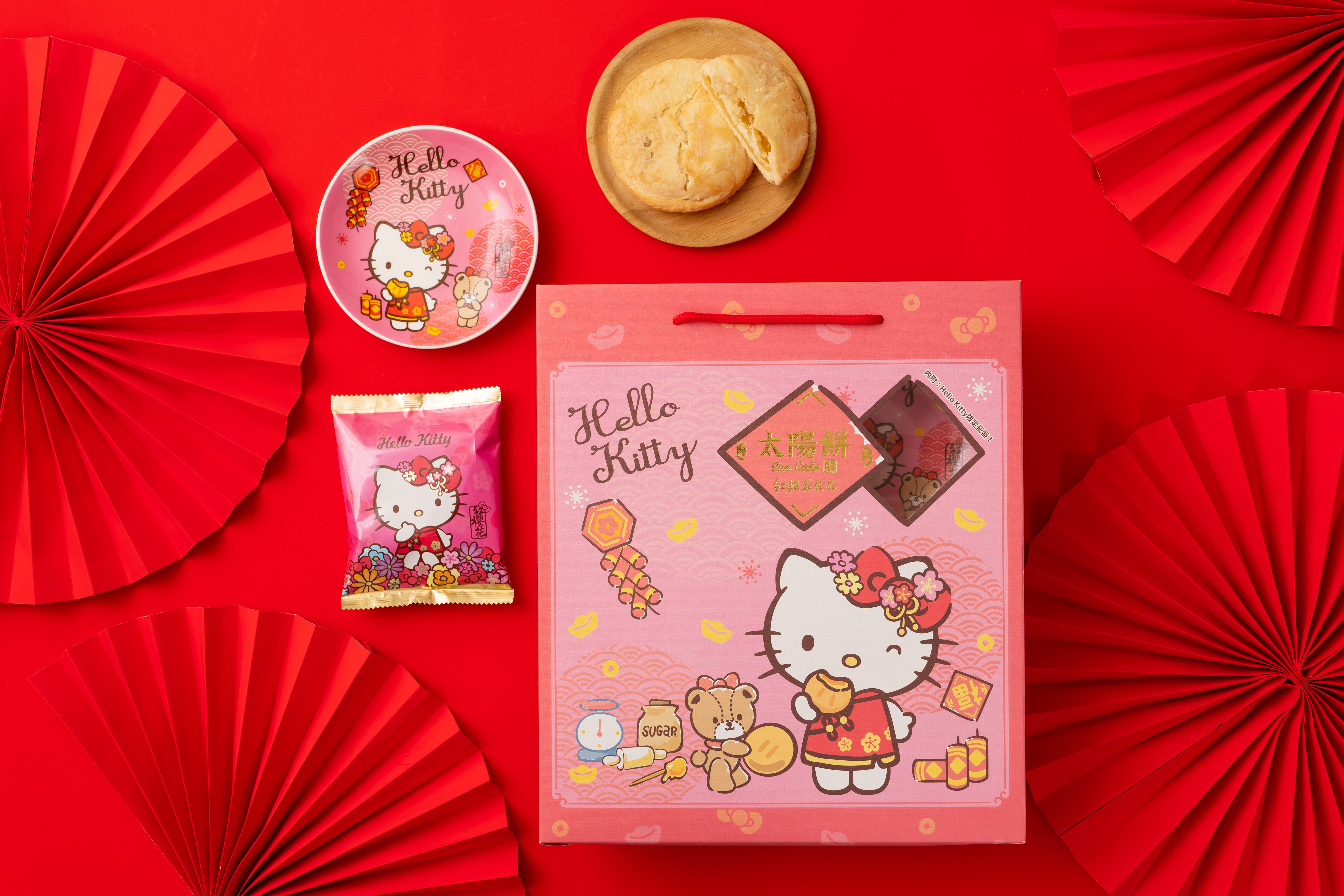 紅櫻花Hello Kitty太陽餅,遵從古法,每片太陽餅皆以手工製作,將純麥芽糖細火慢熬, 反覆的將麥芽餡熬的又甜又香,質軟而不黏牙,才能將麥芽餡做的透心軟,並保留最原始的麥芽香,同時改良了以往傳統的太陽餅餅皮未吃先碎的缺點,用手工桿出層層酥薄的餅皮,酥而不碎,裹著濃而不膩的麥芽餡,是歷久不變的美味,讓人忍不住一口接一口。