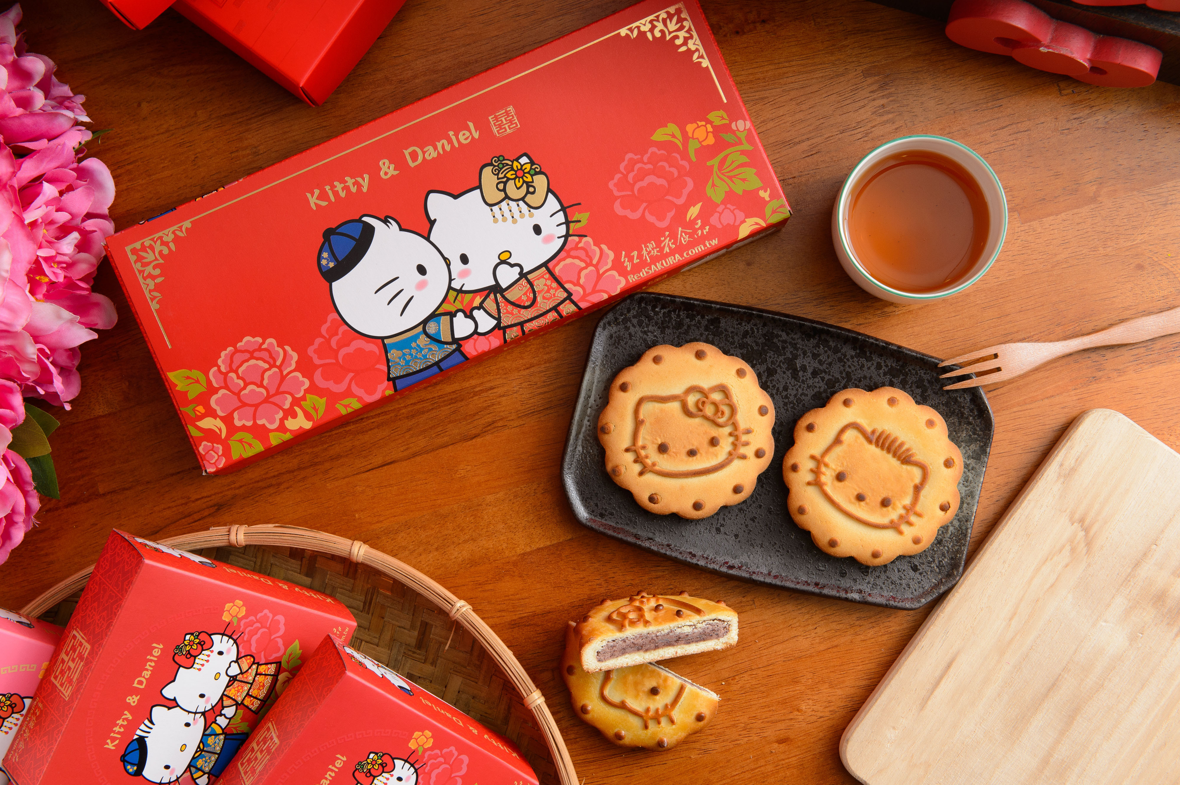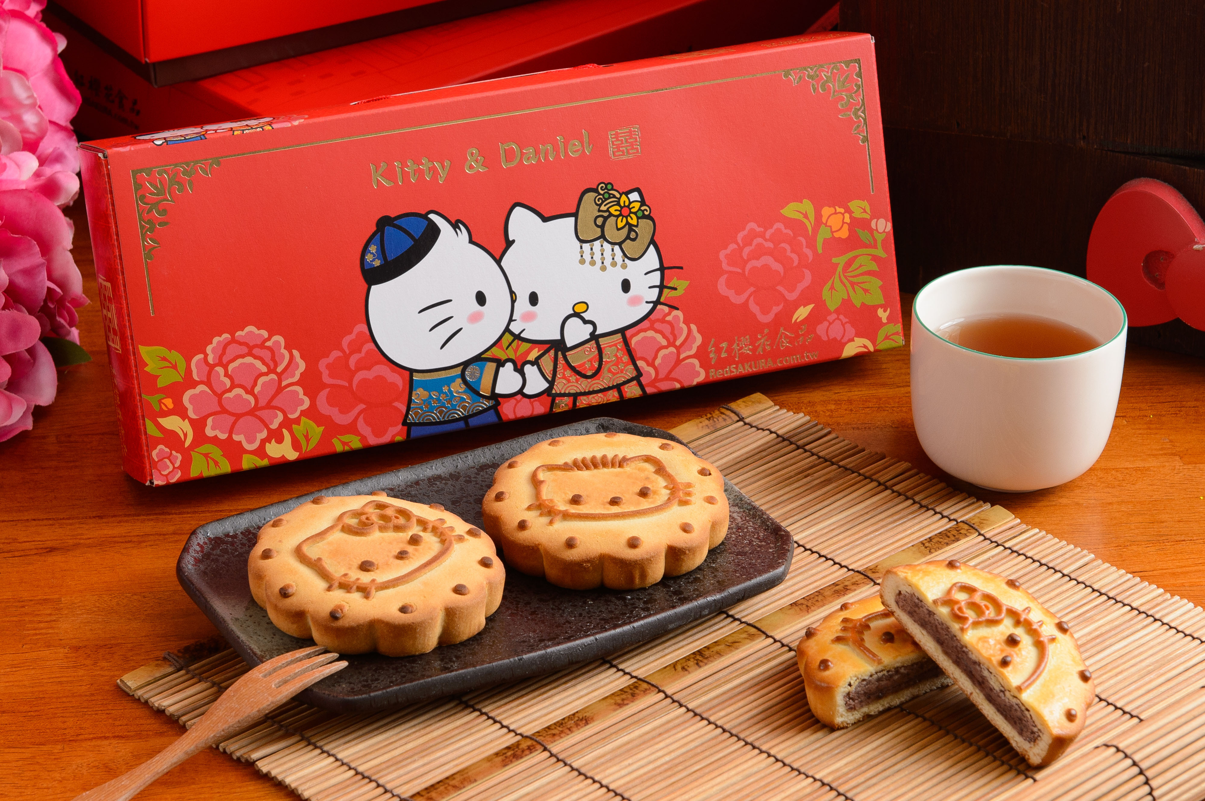 從禮盒視覺到囍餅製作,在每個環節上都費盡心思,紅櫻花Hello Kitty囍餅自推出以來一直深受長輩與新人的喜愛,紅色系燙金的設計,以傳統禮服的KITTY & DANIEL為主角,外觀討喜兼具大方得體,囍餅製作上為了打造獨一獨二的Kitty造型漢餅,由經驗豐富的老師傅使用造型木模手工製作而成,多款經典口味,每款皆以上等嚴選食材和多道繁複工法用心製作,致力打造出中式囍餅傳統喜餅的幸福新食感,不只保留了傳統,也符合了時下潮流。