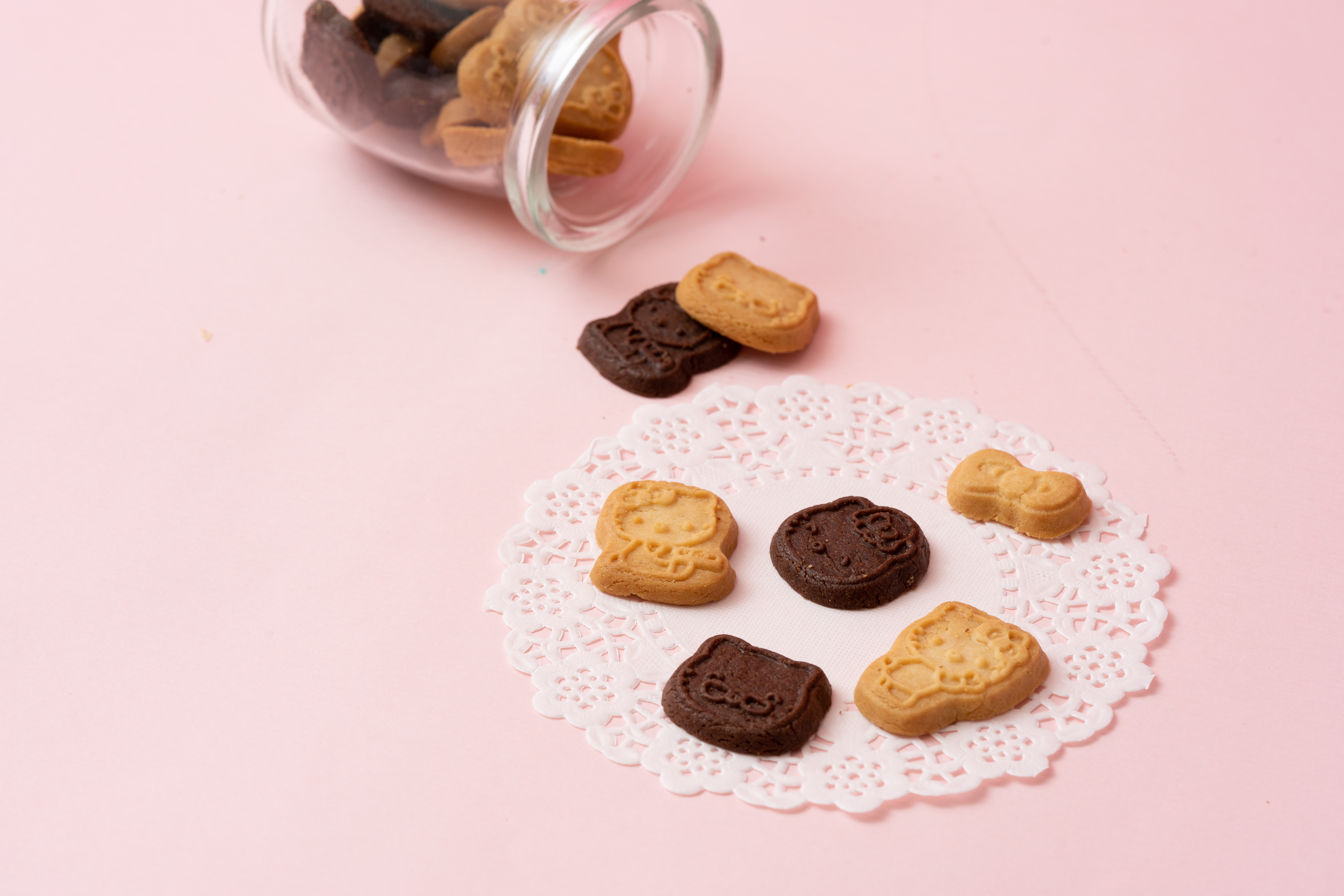 鏘鏘~~~Hello Kitty造型小餅乾來啦,擁有5種超可愛的Hello Kitty造型的曲奇小餅乾,有香醇淡雅的奶油口味、絲滑濃醇的苦甜系大人巧克力口味,打開內盒後還可以畫畫呢,快來打開看看吧!