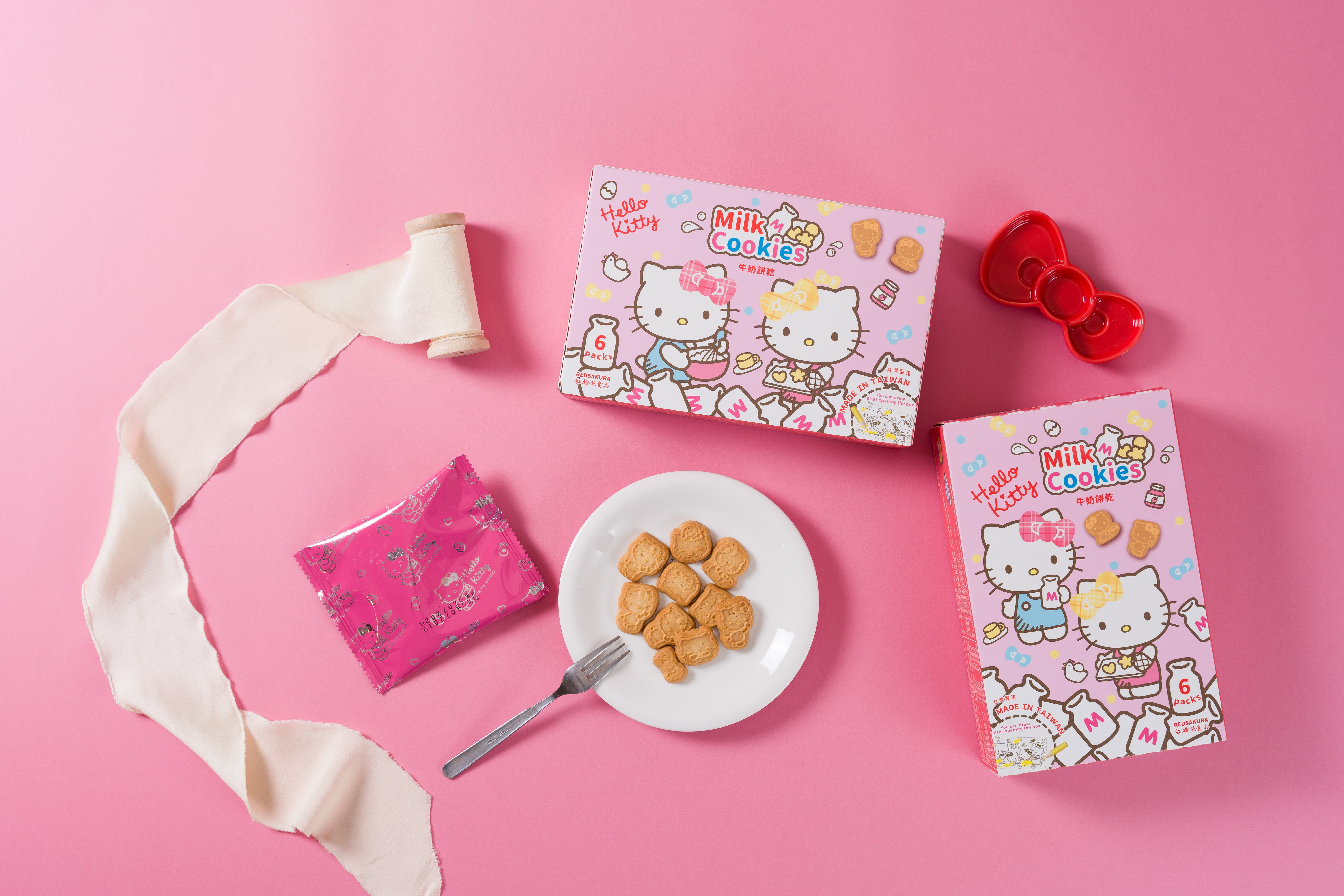 即使成本再高,紅櫻花也堅持使用好的食材製作,紅櫻花使用選自法國的諾曼地奶油、米歇爾可可粉,製作出三麗鷗授權的Hello Kitty造型餅乾,濃郁的餅乾香氣滿足您的味蕾,大人口味的苦甜可可粉讓人忍不住一口接一口,不管是奶油口味還是巧克力口味,大人小孩都喜愛,是辦公室團購零食、團購美食的常勝軍,也是午茶分享時光的最佳茶點選擇喔。