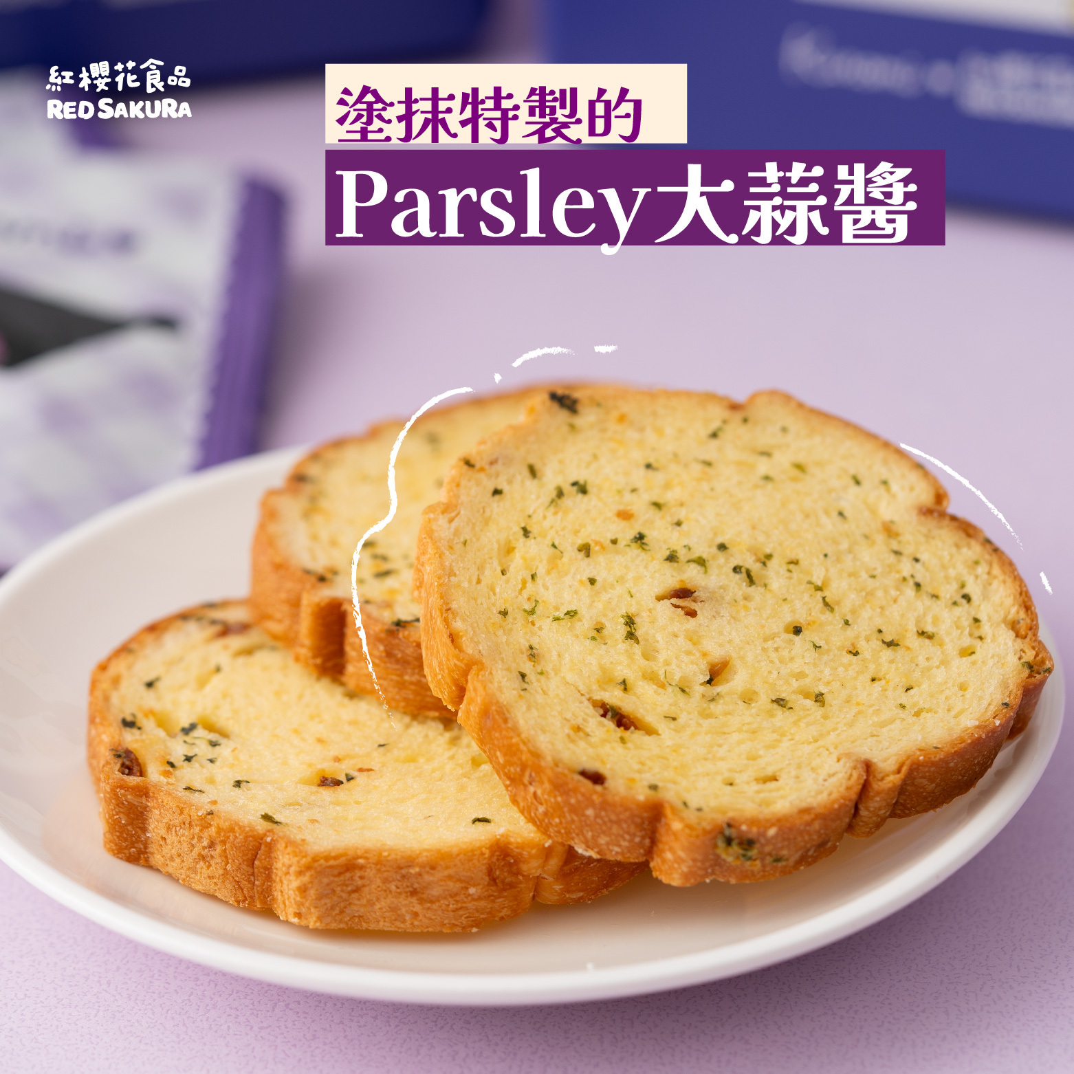 嚴選厚實法國長棍麵包製成,抹上特製的Parsley大蒜醬,