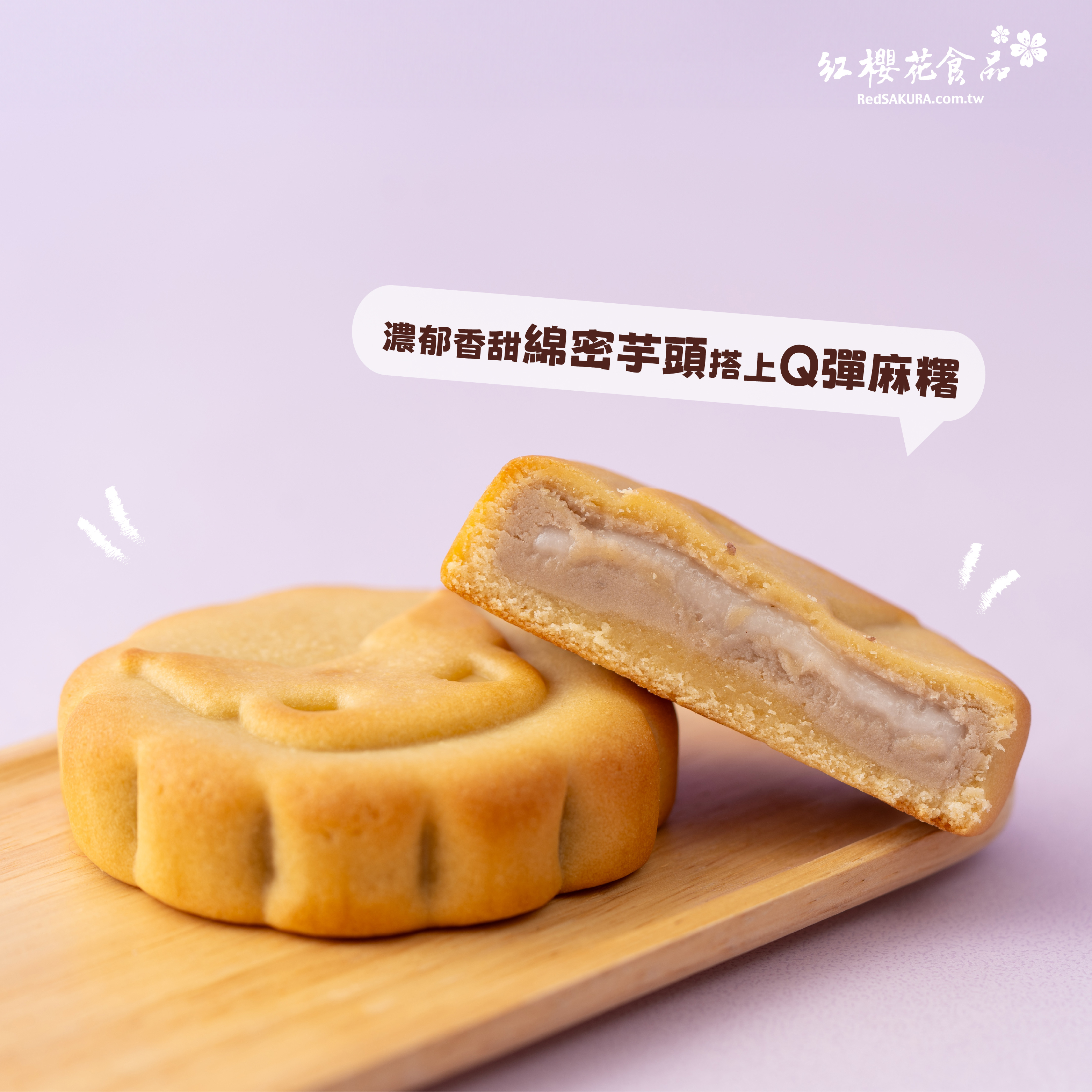鬆軟綿密的蛋餅皮包裹日式內餡,創造出全新的中式和菓子,紅櫻花嚴選台灣在地優質的芋頭,濃郁的芋香、Q軟的麻糬,調以清、香、甜的蜂蜜提味融合出豐富新奇的滋味,讓你送禮不只送進心坎裡,糕餅的美味口感更是讓人念念不忘。新奇亮眼的Kuromi點心盒設計,不只是上班族最愛團購的點心,也是午茶分享時光最佳的茶點、年節送禮的最佳選擇。