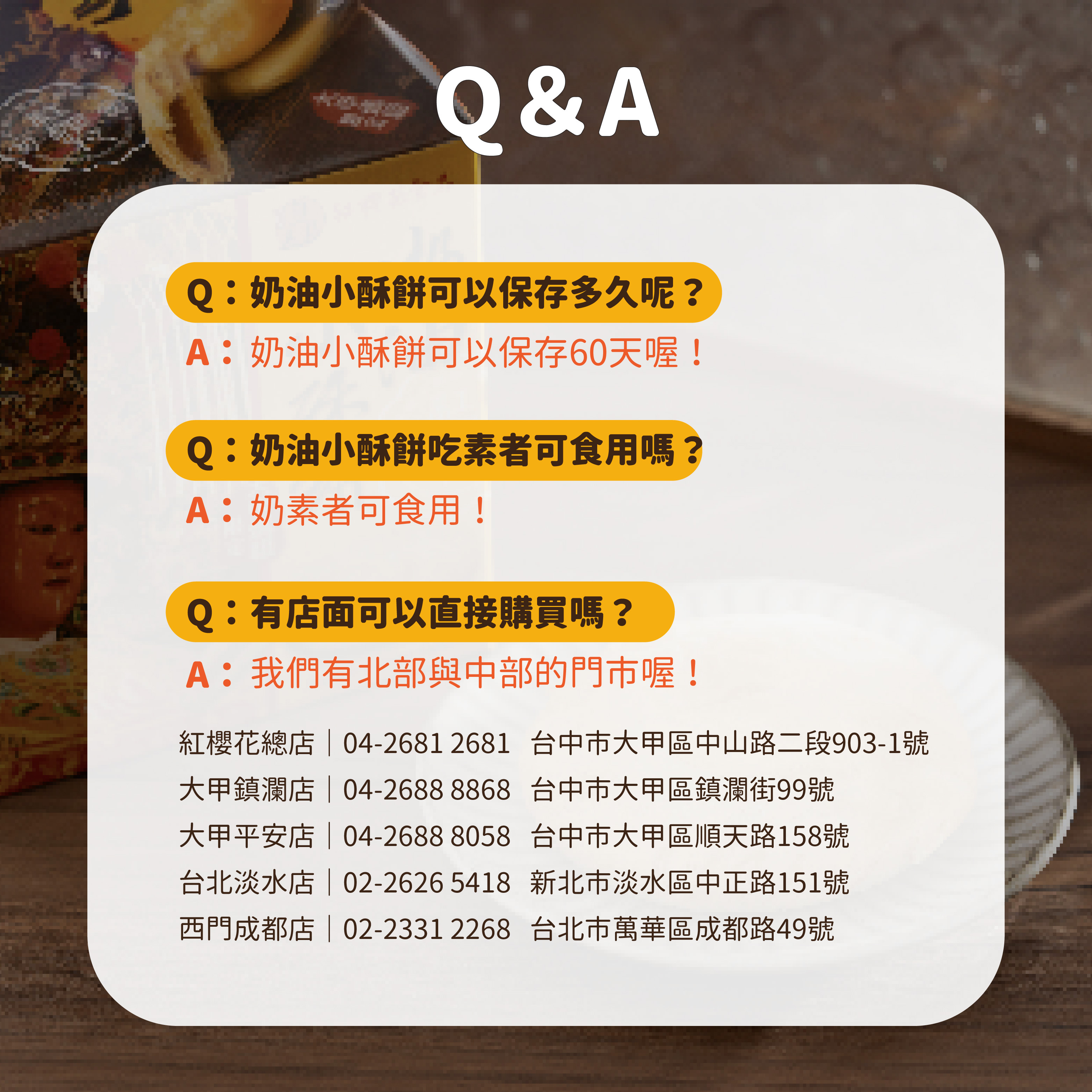 紅櫻花首創「大甲奶油小酥餅」,推出後即造成轟動,被喻為大甲名產奶油小酥餅的黃金傳奇,是國內外旅客指定必買的大甲伴手禮、台灣伴手禮。
