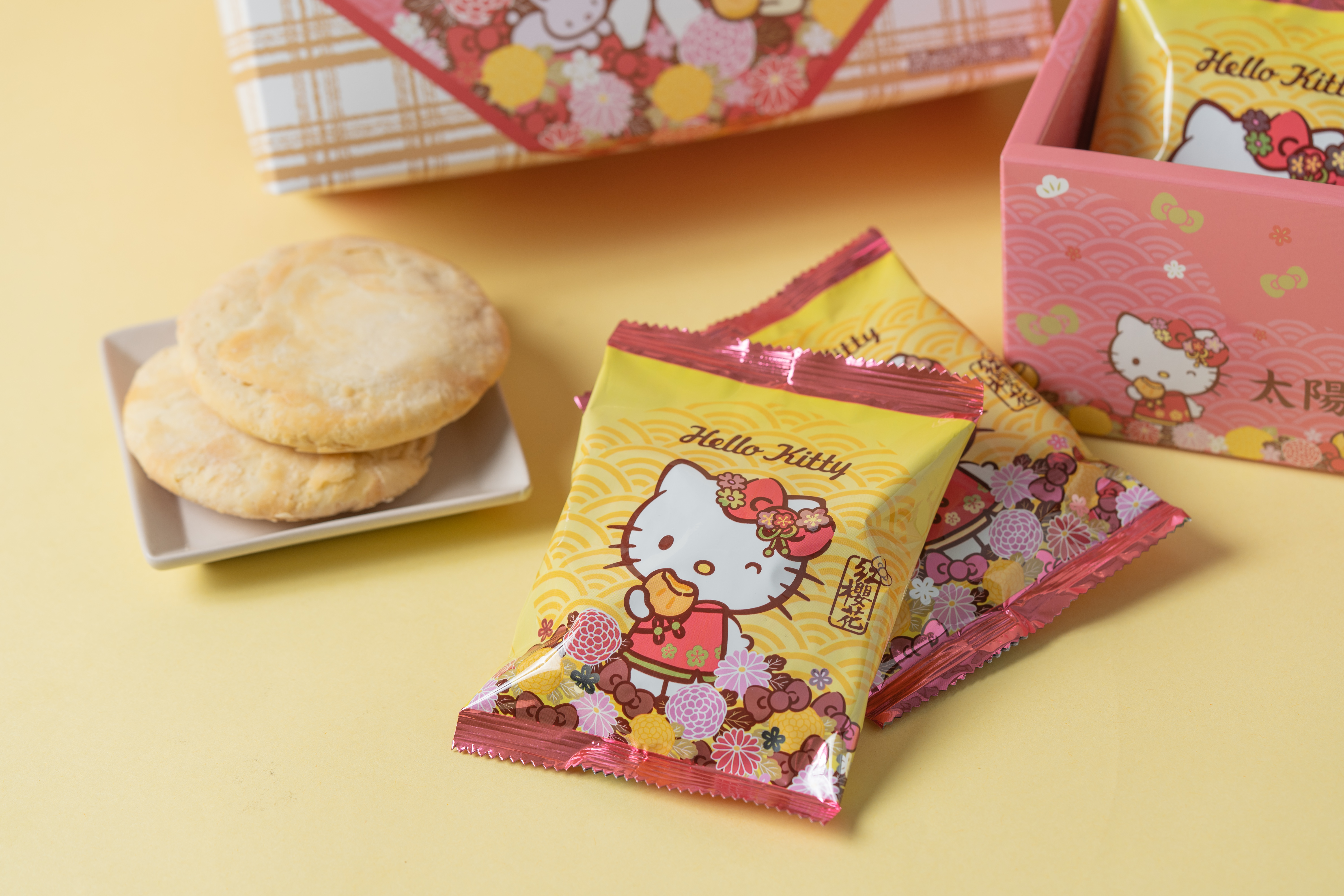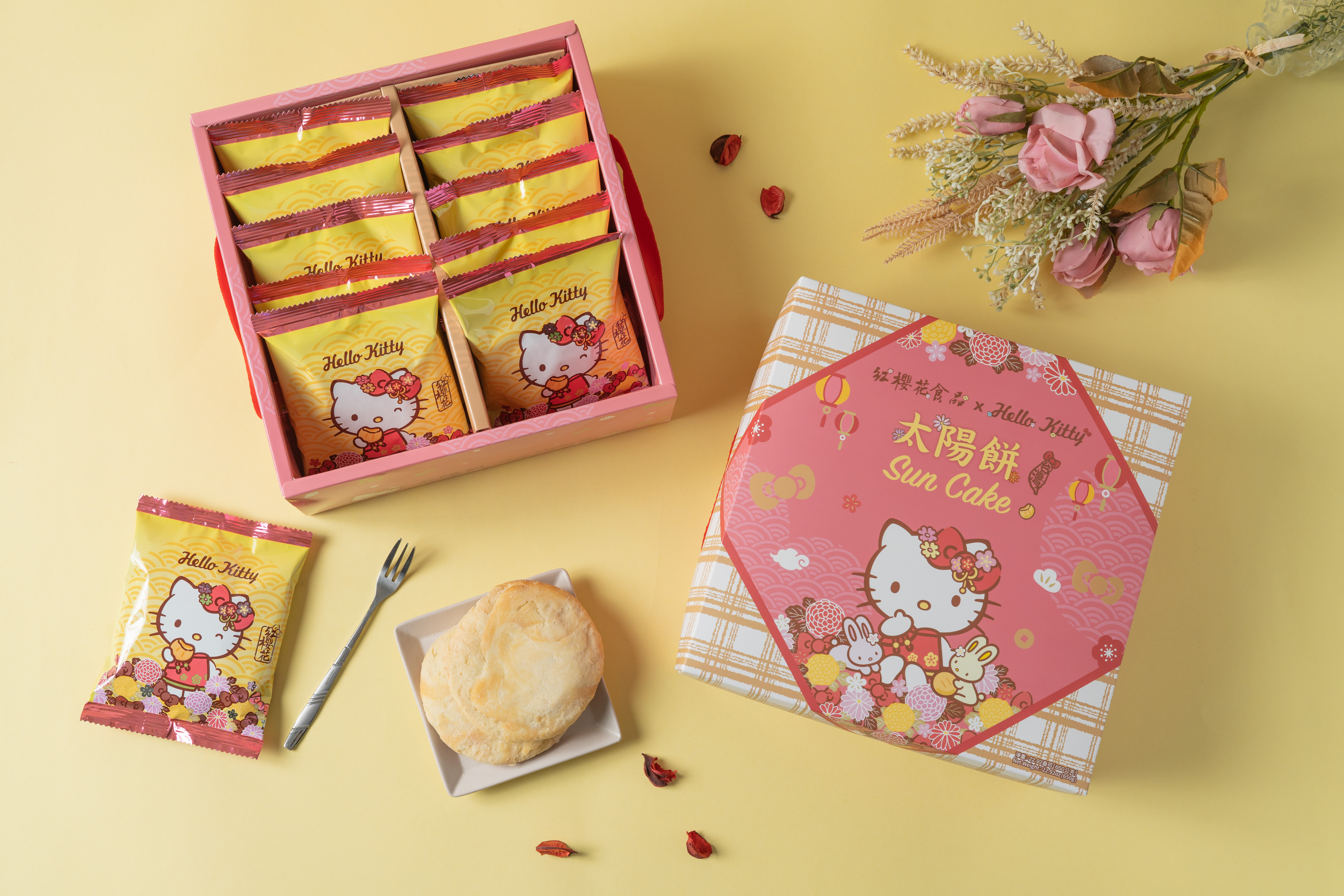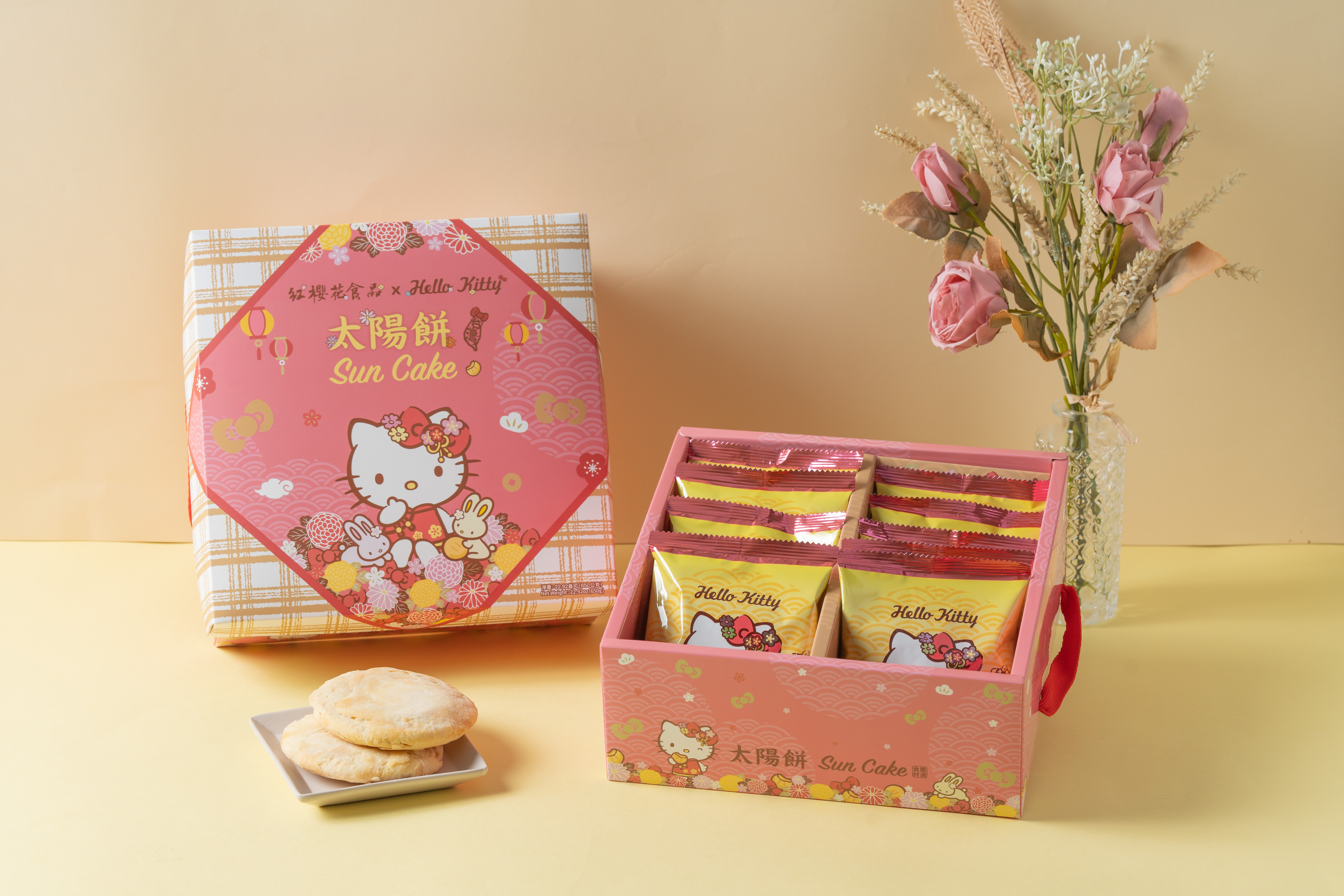紅櫻花Hello Kitty太陽餅,遵從古法,每片太陽餅皆以手工製作,將純麥芽糖細火慢熬,反覆的將麥芽餡熬的又甜又香,質軟而不黏牙,才能將麥芽餡做的透心軟,並保留最原始的麥芽香,同時改良了以往傳統的太陽餅餅皮未吃先碎的缺點,用手工桿出層層酥薄的餅皮,酥而不碎,裹著濃而不膩的麥芽餡,是歷久不變的美味,讓人忍不住一口接一口。